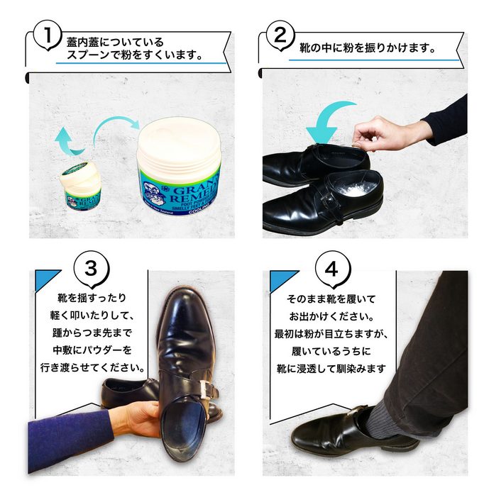 そのため、靴やインソールに薄く塗布することで、臭いの発生を抑えることが可能です。